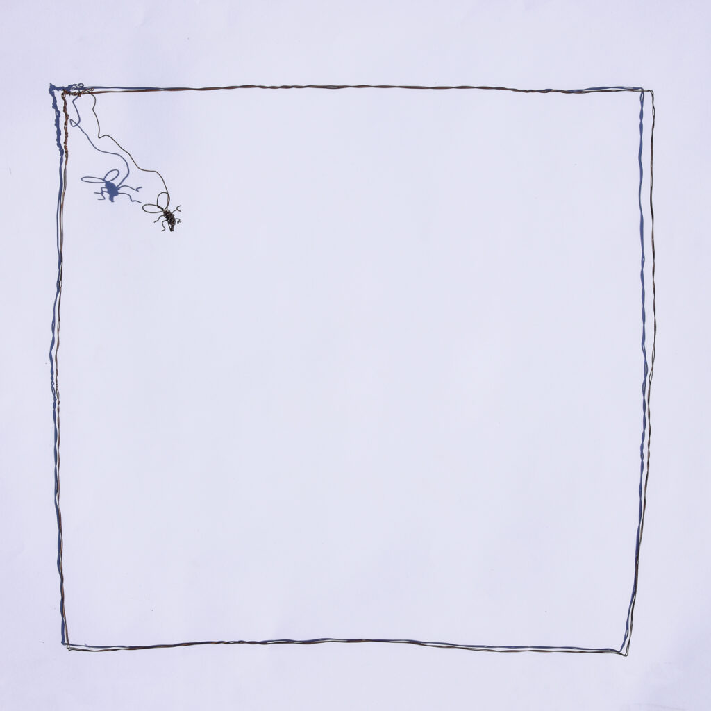 Tecnica: Cemento su vetro – cornice + mosca in fil di ferro
